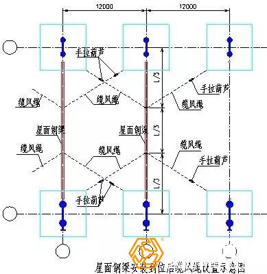 依次繼續(xù)安裝屋架,柱間支撐也穿插著進(jìn)行安裝
