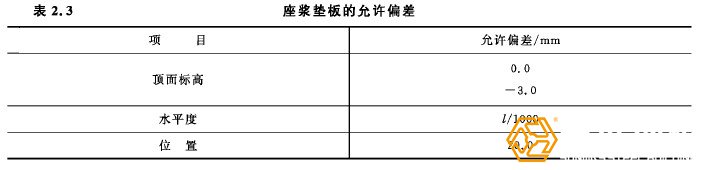 第10. 2. 3條采用座漿墊板時,座槳墊板的允許偏差應(yīng)符合表2. 3.