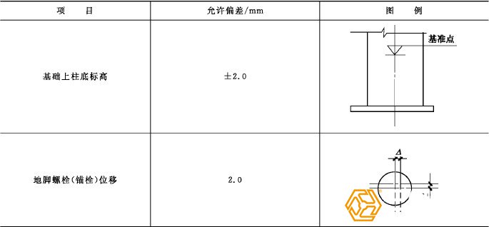 第10. 2. 2條基礎(chǔ)頂面直接作為柱的支承面和基礎(chǔ)頂面預(yù)埋鋼板或支座作為柱的支承面時,其支承面、地腳螺檢(描栓)位置的允許偏差應(yīng)符合表2. 2的規(guī)定。